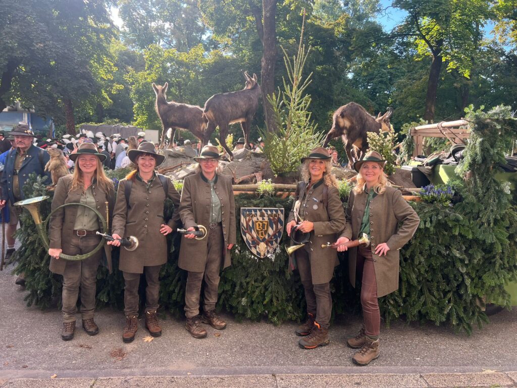 Die Jagdhornbläser der Kreisgruppe Obernburg, die seit 2020 mit den Bläsern des Schützenvereins Freischütz in Pflaumheim fusioniert haben, waren auf Einladung des Präsidenten des Bayrischen Jagdverbandes Ernst Weidenbusch nach München gereist, um die bayrischen Jagdhornbläser auf dem Oktoberfestzug zu vertreten. Unter Leitung ihres Hornmeisters Roland Schuler nahmen 16 Jagdhornbläserinnen und Bläser am Festzug durch die Innenstadt Münchens bis zur Theresienwiese teil. Bei strahlend blauem Himmel und sommerlichen Temperaturen wurde die ca. 7 km lange Strecke mit verschiedenen Märschen zurückgelegt. Gemeinsam mit den Hundeführern, Falknern, Berufsjägern und Teilen des Jagdpräsidiums mit Jagdkönigin nahmen ca. 160 Jägerinnen und Jäger für den Bayrischen Jagdverband am Festzug teil und liefen gegen 12 Uhr ins Augustinerzelt auf der Wies`n ein.